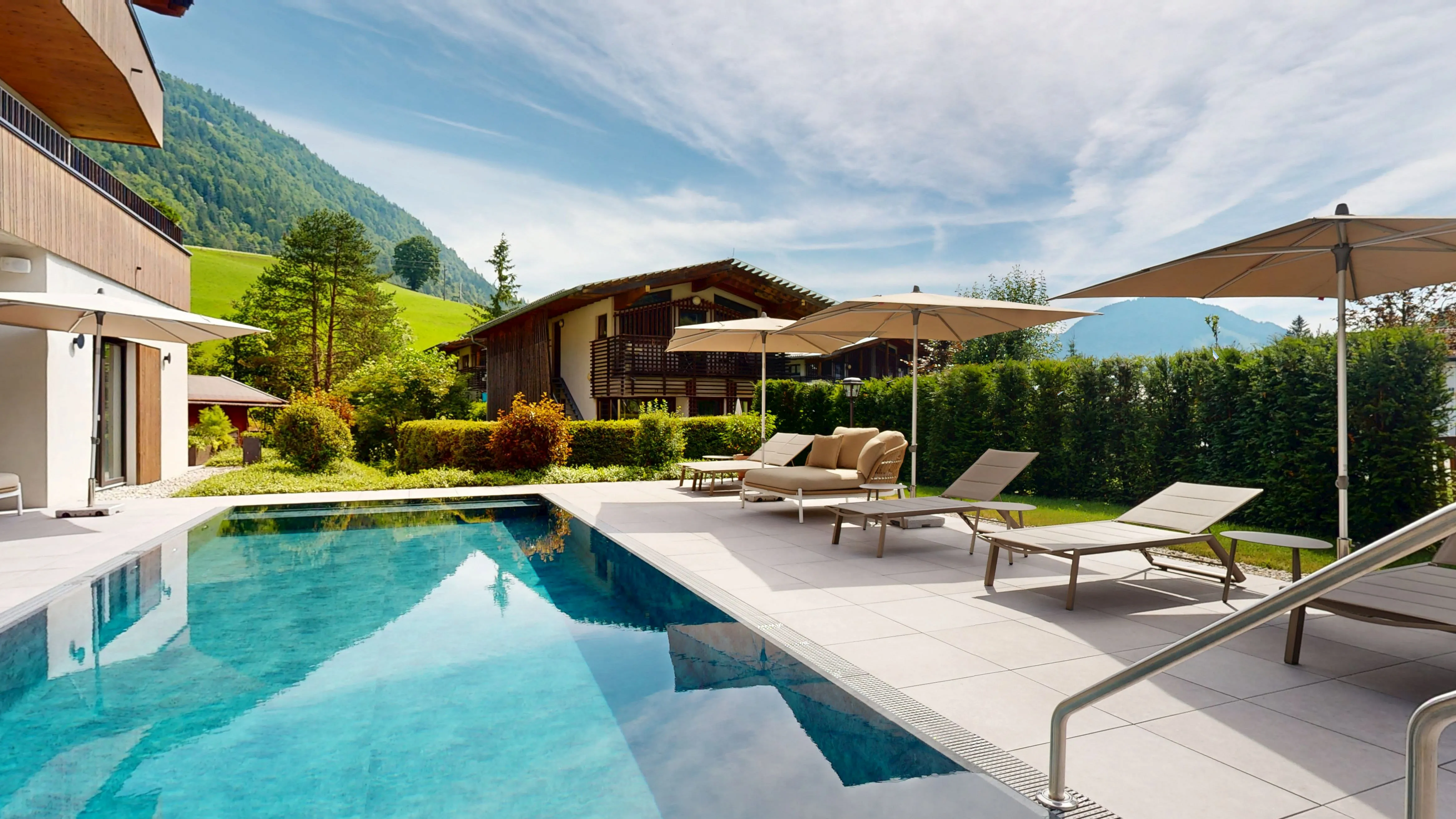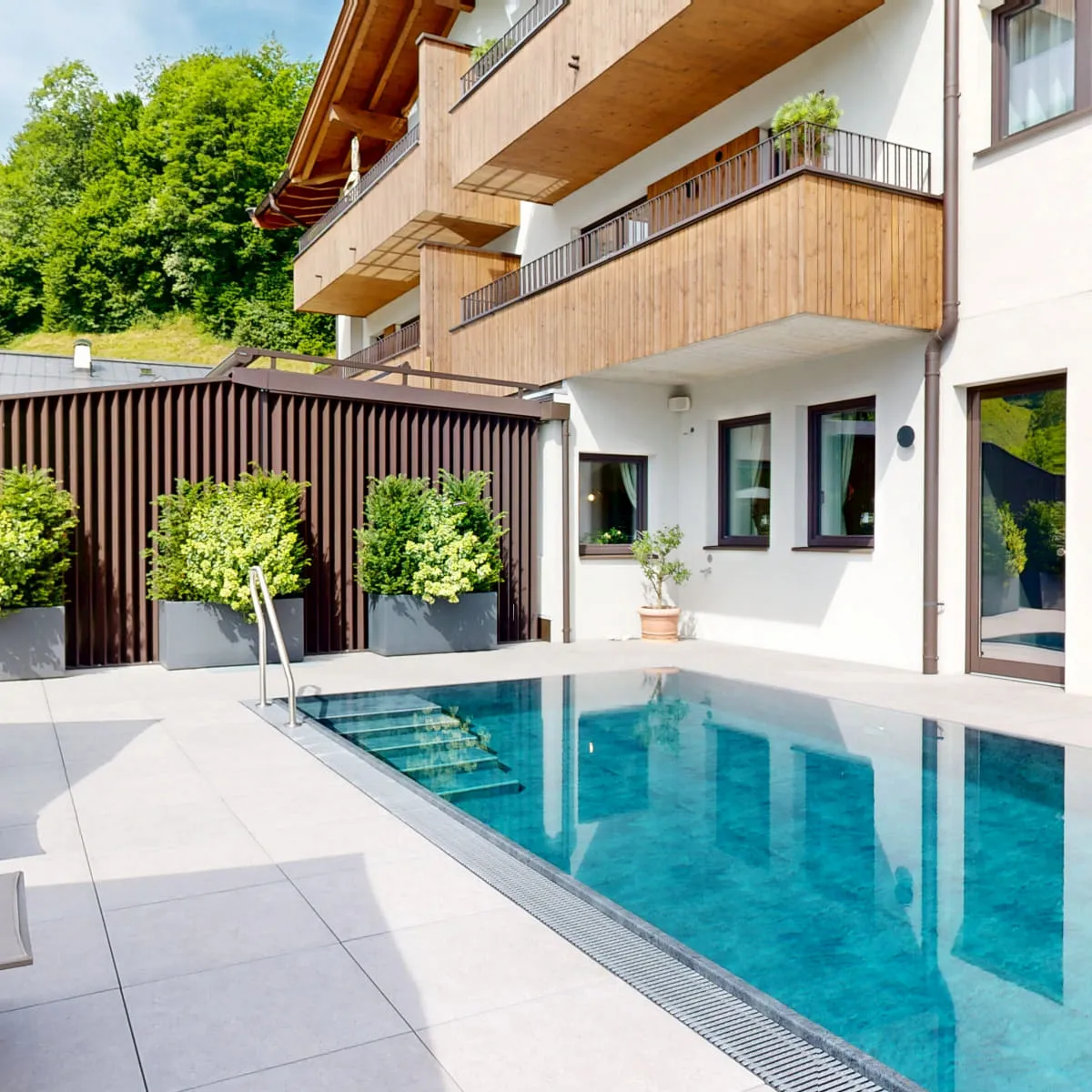 In den Sommermonaten sorgt unser 10-mal-4-Meter Pool für die nötige Abkühlung. Wem das nicht genügt, der kann mithilfe der Gegenstromanlage auch locker einige sportliche Kilometer zurücklegen.